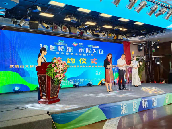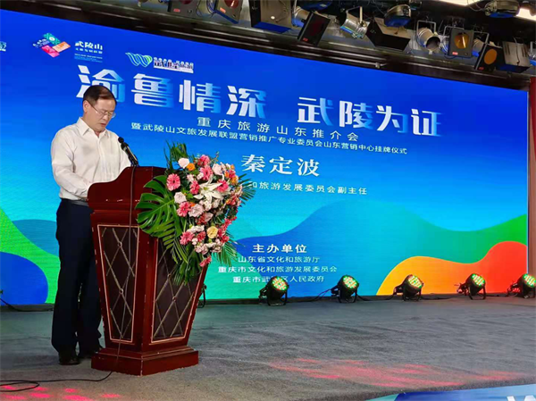 此外,秦副主任还表示,为深入贯彻落实山东重庆东西部协作第十六次联席会议精神和鲁渝“十四五”东西部协作框架协议,携手打造新发展阶段鲁渝协作“升级版”,并策划举办“渝鲁情深·武陵为证”重庆澳网官方网站山东推介会活动,在山东设立营销中心,意在进一步深化渝鲁文化澳网官方网站交流合作,推进政策互惠、资源互换、产品互推、客源互送、利益互享,共同促进两地文旅的大发展大繁荣。