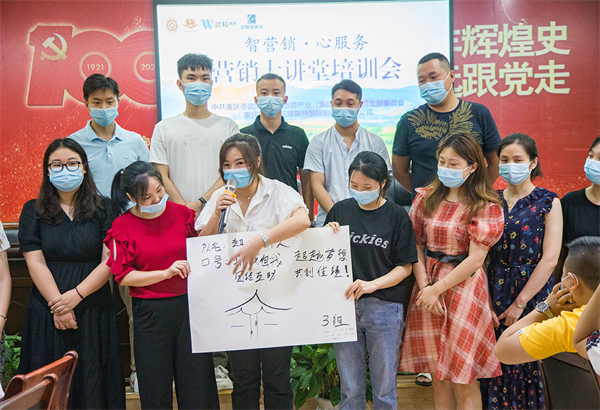 其中由市场营销部员授课人罗富诚从武隆过去传统的营销模式和现行的线上数字化营销与线下传统营销模式齐头并进,各版块全力以赴的新营销模式的转变方面分享了他的市场营销经验,其通俗易懂的方式赢得了场下员工的阵阵掌声。