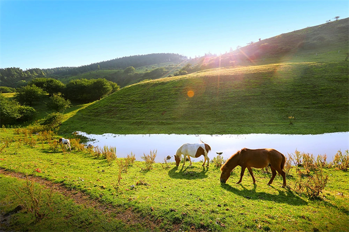仙女山的秋天,如画一般美妙。落日余晖下,一片蓝天、一座山、一方草原、一片森林、几匹野马,一列欧式风情的小火车,亦是它的独有的层次。九月,初秋的颜色已悄悄爬上山间。一眼望去,视野内层林尽染,游于山间总有你想像不到的惊艳和浪漫。你可以在这里尽情的捕捉山光与秋色,随手一拍便是风景大片。