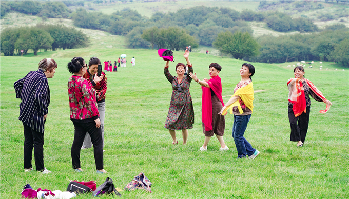 记者跟随景区别有风情的欧式小车来到仙女山景区大草原。身着色彩鲜艳衣服的游客们在草原上迎风起舞。一位来自重庆巴南区的刘女士告诉我们,他们一群人本打算暑假来仙女山玩的,但因为疫情推迟到了现在,不过今天的仙女山真的很漂亮,可谓是秋高气爽,风景宜人。“太漂亮了,照片拍得太多,手机都快装不下了”,和刘女士同行的朋友高兴的告诉我们。