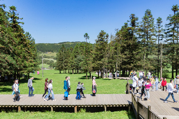 上午11点,小编看到仙女山景区内人潮汹涌,进入景区的车辆川流不息。据了解,家庭亲子游成为此次中秋出游武隆的主力军,他们大多因“仙女山最美观光公路”慕名而来。