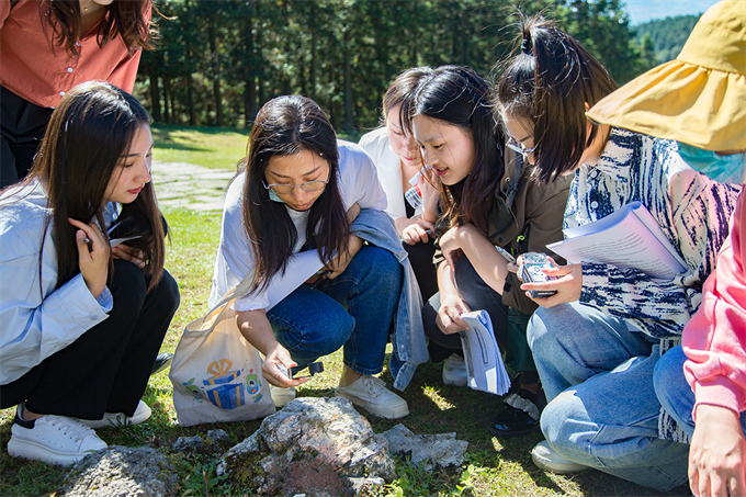 培训中,讲师在仙女山景区通过实地观察、做实验等方式讲解地质科普知识。从如何和游客互动、如何让研学参与者更直观的大自然中汲取知识,激发科学兴趣等方面提升研学导师专业技能。