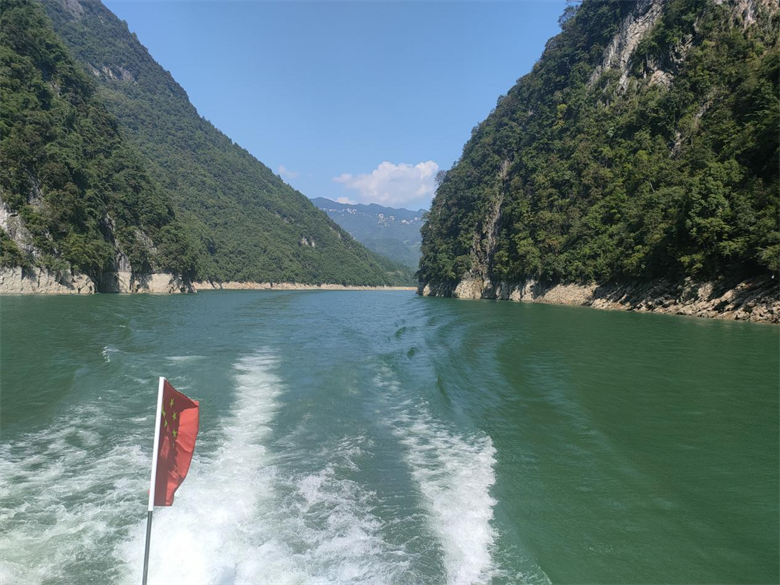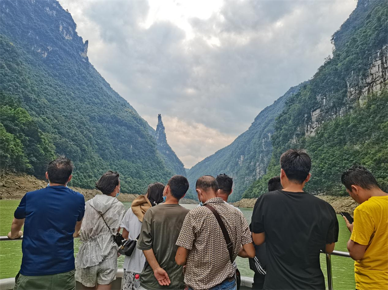 “青山绿水”醉游人”。上午10点,小编跟随游船来到芙蓉江。船行至江中。两岸青山,一江翠水,游人不禁感叹”舟行碧波上,人在画中游“。“今年国庆几天,武隆的天气特别好,在蓝天白云的映衬下,武隆的山水愈发迷人。一路的青山绿水,特别养眼,让人心情也格外愉悦。“自驾来武隆的胡先生还告诉我们,”对于不想把难得的国庆假期浪费在车上,又想领略祖国青山绿水的自然美景,武隆绝对是重庆市民的首选。这次几家人一起自驾来武隆玩得很开心。“