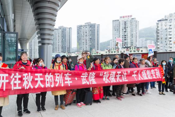 十月武隆,银杏红枫满山,秋意正浓。10月16日下午13点06分,一趟以“秋摄无边--开往秋天的列车”为主题的专列搭载着1000余名游客,顺利抵达武隆火车站,开启两天一晚的赏秋色、拍秋景武隆踏秋之旅。