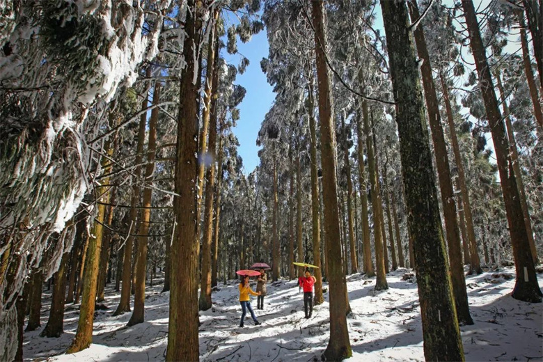 仙女一般从11月中旬至第二年3月期间都会下雪,由于海拔高、空气湿度大,极易形成冰棒、冰柱、冰瀑、冰挂。