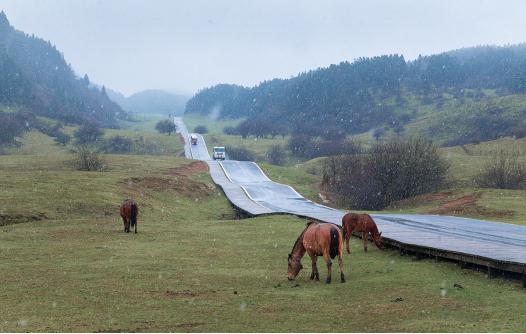 (图/王俊杰)立冬刚过,初雪便至。随着全国新一轮降温天气来临,11月12日,平均海拔1900米的重庆武隆仙女山景区,迎来今冬第一场降雪。