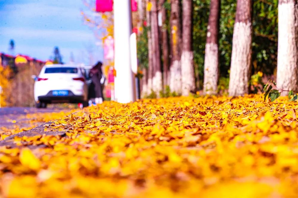 低头,满地黄澄澄的落叶,