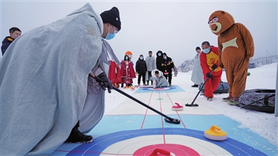 游客正在参与趣味运动会。王俊杰/摄