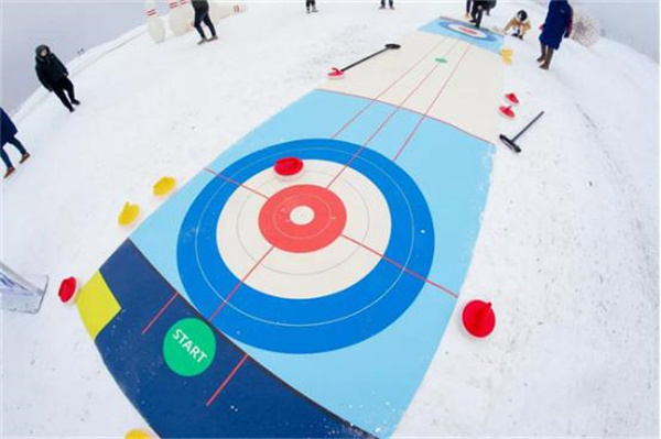 响应北京冬奥滑雪运动热潮,元旦节期间,仙女山滑雪场举行趣味运动会之冰壶大赛,吸引了众多游客体验冰雪乐趣。“你要对准了再轻轻放手!”在冰壶竞技体验趣味区,不少游客热情高涨,单膝跪地,手握冰壶柄,放稳冰壶,再轻轻放手,现场还出现了不少“军师”,你一言我一语,欢乐不断。