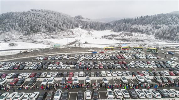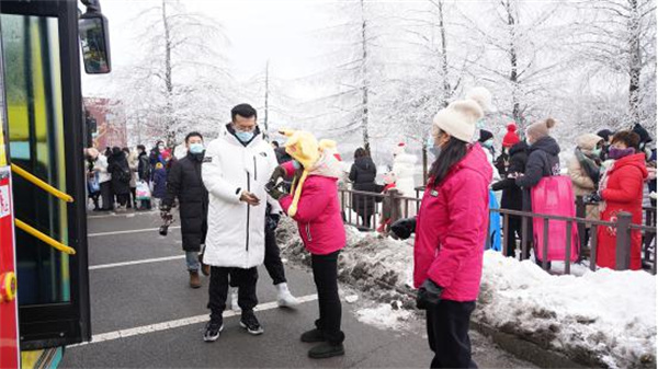 元旦节期间,为保障游客出游安全与道路畅通,景区工作人员24小时奋战在冰雪一线,撒盐除冰,清除障碍,确保道路畅通。为提高交通效率,景区投入上百辆中转车,从仙女山游客接待中心到仙女山景区免费中转游客。