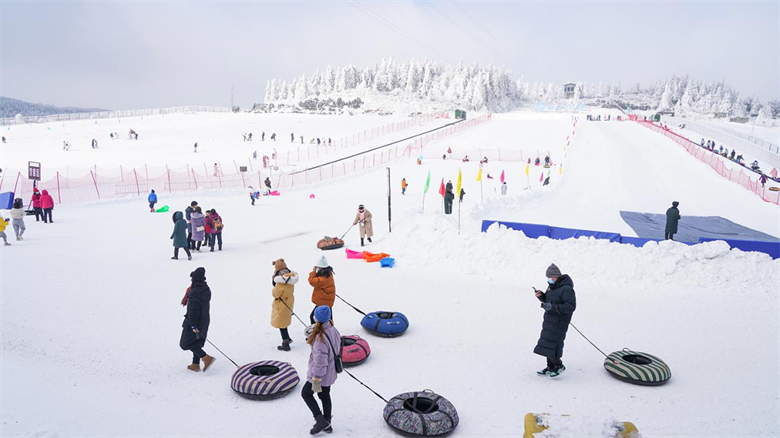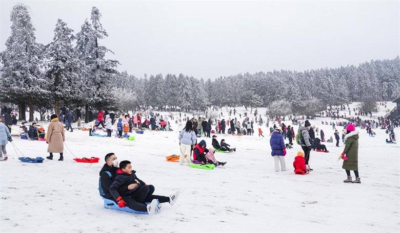离重庆主城仅需要2个多小时车程的武隆仙女山耍雪十分火爆。受前几天的寒潮影响,仙女山景区被十年难遇的一场大雪所覆盖,一片银装素裹犹如童话世界一般,成为人们赏雪、耍雪的天堂。对雪有着深深执念的游客们纷纷闻讯而来。