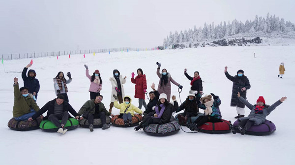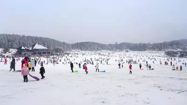 在仙女山,除了赏雪,还可以进行雪上运动。作为西南地区最大高山滑雪胜地,仙女山室外滑雪场面积达5万平方米,可同时容纳3000人滑雪,根据游客的滑雪水平及爱好,还专门设置了初级滑雪道、中级滑雪道、高级滑雪道,及滑雪橇、雪上飞碟和滑雪船等各具特色的滑雪器具。
