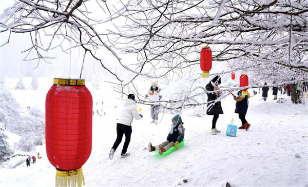 春节期间,仙女山大草原张灯结彩,节日氛围浓厚。众多游人打雪仗、堆雪人、滑雪、玩冰壶、滑雪船、拍照玩得不亦乐乎。此外,武隆景区为增添节日的乐趣,在仙女山、天生三桥、芙蓉洞、龙水峡地缝景区开展了“新春寻宝”“全家福”“新年心愿”等活动。活动期间,游客在以上景区收集完整的景区名字,拍照发朋友圈,即可兑换相应景区的精美礼品一份;集齐分散在各个景区的“虎”“年”“大”“吉”四字后,还有机会赢取新年超级大奖华为手机。
