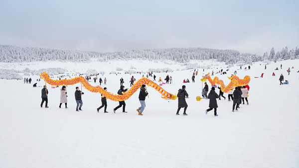 虎年新春,“趣”游武隆。2月4日(大年初四),武隆各大景区张灯结彩,热闹非凡,处处呈现出浓厚的新春节日氛围。“寻宝武隆迎新春”、“舞龙表演”、“冰雪世界的舞会”等系列新春活动纷呈,吸引游客纷纷参与。