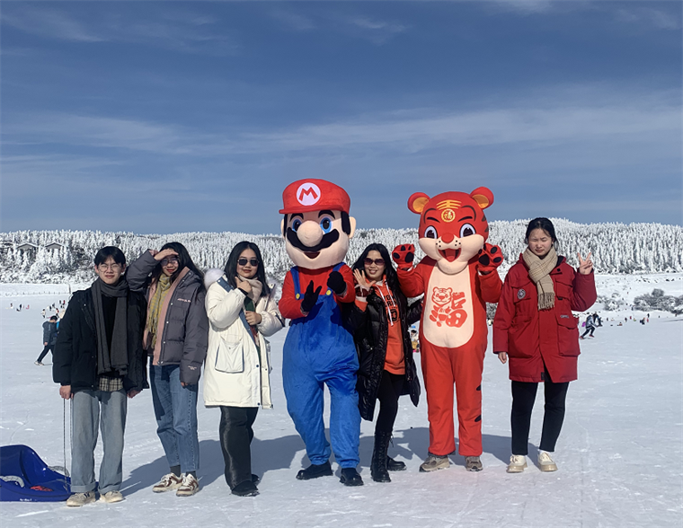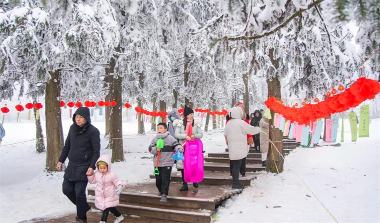 景区各种新春主题趣味活动仍在持续进行,游人和福气满满的财神爷、呆萌可爱的小老虎、小熊猫等NPC玩偶互动;和家人朋友在雪地里打雪仗、堆雪人、滑雪,雪原上欢声笑语一派欢乐祥和。