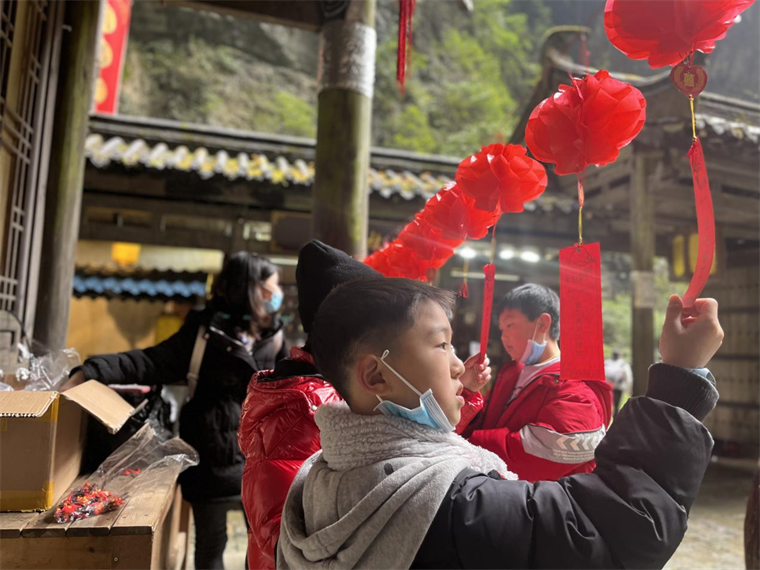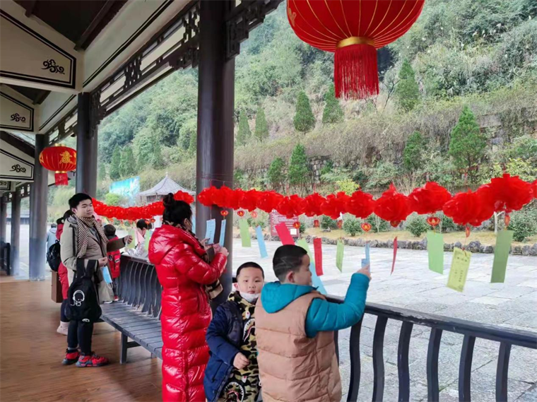 一条条灯谜吸引了众多游人参与,有的驻足细看,有的胸有成竹,有的想着碰碰运气,又或是凑个热闹。“带孩子过来游玩的同时也能体验中国传统的节日文化,武隆景区很用心,确实不错!”来自江津的刘女士告诉小编。