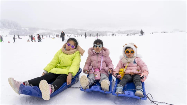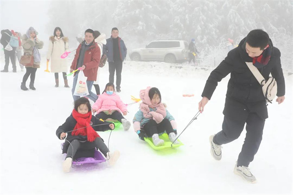 冰天雪地、天寒地冻一点没有阻挡游客堆雪人、赏雪、滑雪、玩雪的欢声笑语。采访中, “服务暖心”“活动丰富”“好耍得很”成了来武游客的高频词。