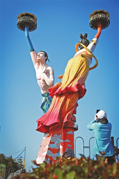 3月8日当天,记者在景区内看到,游客在工作人员指导下,有序排队、检测、进园,迎客与防疫工作两不误。飞天迷林、望仙崖、悬崖秋千、飞天之吻等众多景点,各具特色,吸引许多游客前来观光、体验、拍照,其中,最受游客青睐的当属飞天之吻,不少游客都是慕名而来,体验高空之上的浪漫与刺激。