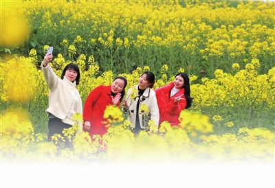 置身一望无垠的花海之中,一簇簇、一片片金灿灿的油菜花,给人以强烈的视觉冲击。春风里,花浪摇曳着曼妙舞姿,细说春天的无限美好。