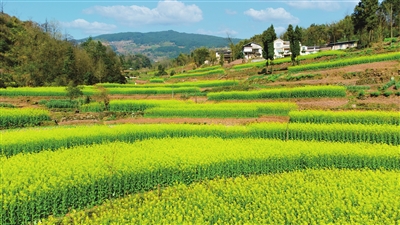 三月,是油菜花的盛花期。春暖风轻,在长坝镇和庙垭乡,近千亩的油菜花竞相绽放,一株株半人高的油菜花迎风招展,金黄的花蕊散发出阵阵清香。山川、村舍、河流、道路皆融入油菜花海之中,天地之间,犹如一片金色海洋。