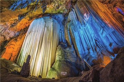 国家5A级景区,世界自然遗产地,与美国的“猛犸洞”,法国的“克拉姆斯洞”并称世界三大洞穴,芙蓉洞被称作“斑斓辉煌的地下艺术宫殿”,钟乳石琳琅满目,丰富多彩,几乎包括钟乳石所有沉积类型。70多种次生化学沉积物所构成的丰富景观,“巨幕飞瀑、大小雁塔、五龙柱、火箭待发、万箭挂壁”,辉煌壮丽,玲珑剔透,令人目不暇接。