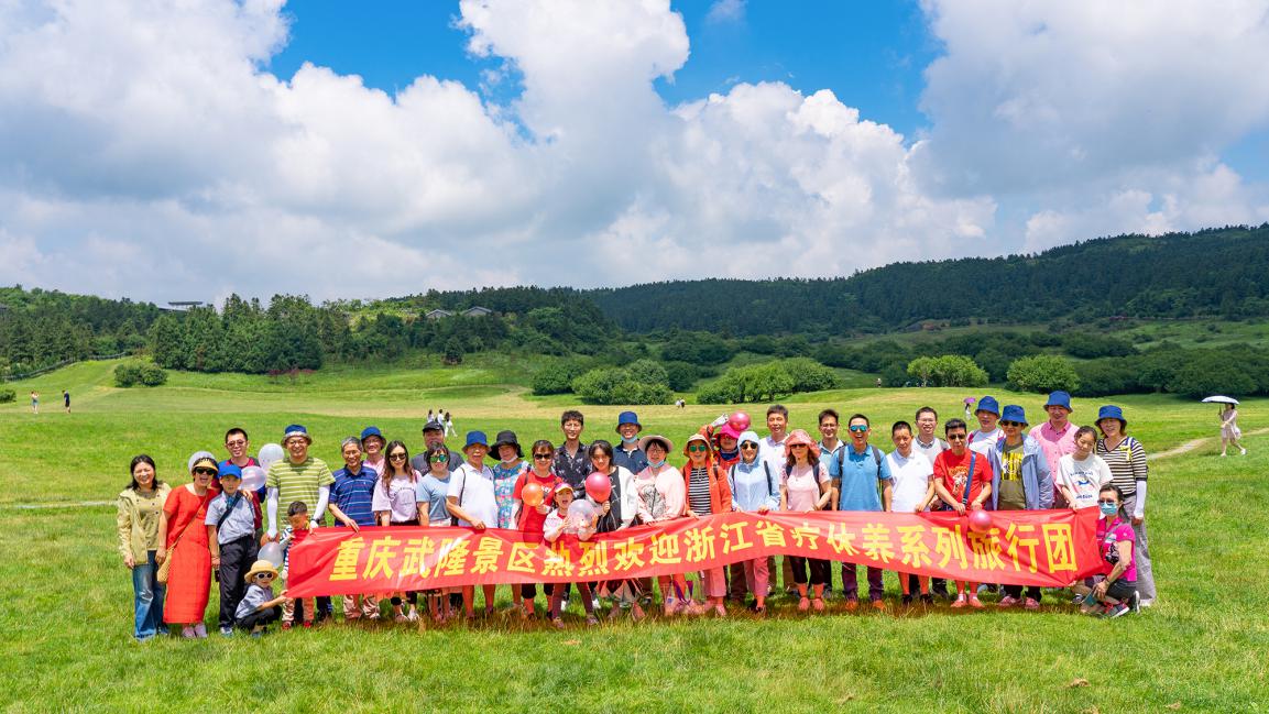 7月5日,浙江省首个疗休养团队游武隆活动正式启动,来自浙江捷程公司的首发团顺利到达武隆,开启了世界自然遗产之旅,首发团主要游览仙女山、天生三桥、龙水峡地缝等景区。