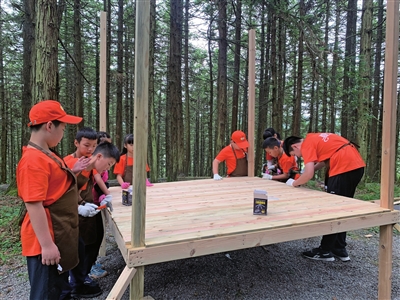 孩子们的梦想有很多,但是肯定少不了这一个:拥有一间自己的树屋。7月12日是重报小记者研学夏令营研学的第二天,孩子们走进森林,感悟大自然的美好与保护环境的重要性,并化身小小建筑师,建造了一座森林童话树屋。