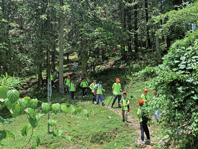 当天上午10点,经过队伍整装、物资发放后,小勇士们雄赳赳气昂昂的向目的地仙女山大草原出发,丝毫没有对8公里徒步旅行产生畏惧之意。森林里,斑驳的阳光散落在林间,满目翠绿间,一群手着登山杖的孩子,或轻松、或艰难地登上陡坡、跨跃水渠、走过草坪,用脚步丈量脚下的土地,未知的野外环境让孩子们的旅程充满了挑战。