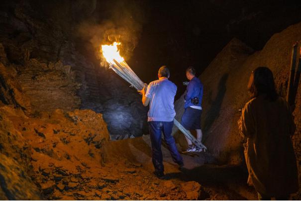 “大家把火把点起哟!”还没入洞,应大哥就十分专业的就地取材点起了火把。漆黑的神秘洞穴像张开大口,等着我们入菜,让我对接下来的未知世界既紧张又期待。