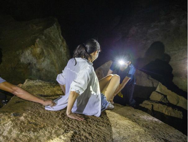 “你们看地上这些黑色的小颗粒是什么?”巨石堆中密密麻麻的黑色小药丸,吸引了我的注意力。“那是夜老水(蝙蝠)的粪便!”应大哥一句话瞬间叫我毛骨悚然,洞穴潮湿非常适合蝙蝠生长,一想起尖嘴猴腮下,蝙蝠隐藏着青面獠牙,背脊发凉的我祈祷此次千万别遇上。