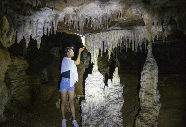 什么叫身体下地狱,让眼睛上天堂!这句话在隐藏的溶洞得到了完美诠释。一整片石钟乳群出现在我们面前。鳞次栉比的钟乳石倒吊在洞顶,洁白的石笋密密麻麻地遍布洞内。