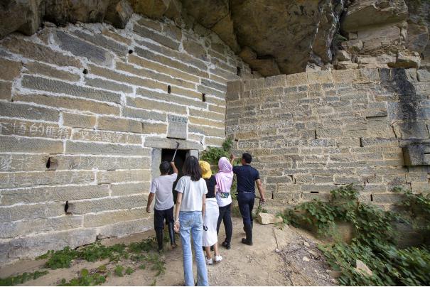 最后探索的欲望将疲倦吞噬,走出溶洞,好奇心驱使着我们向桃源洞前进。修建于悬崖绝壁之上,桃源洞被当地人称为土匪洞。