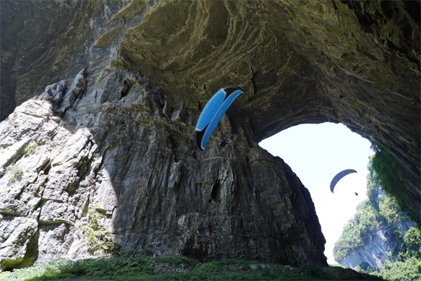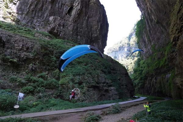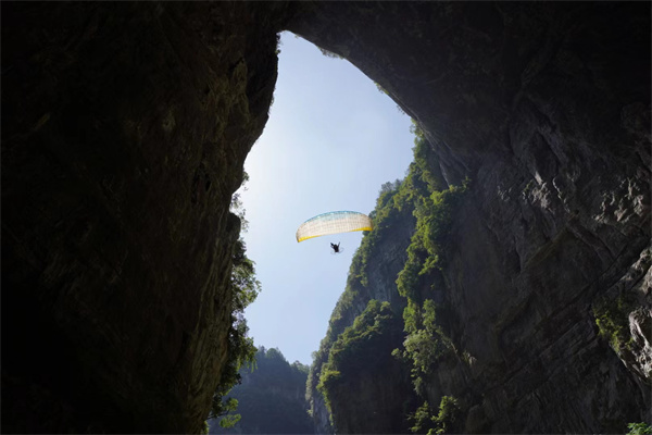 据悉,这是世界首次动力伞成功穿越天生三桥,而实际上,作为世界规模最大天生桥群,其鬼斧神工的险峻自然奇观已经成为各类极限运动挑战的热门打卡地。挑战成功后,7月28日至30日每天上午9:30、11:30、下午15:30,盛广强及其团队还将在天生三桥进行为期三天的表演活动。