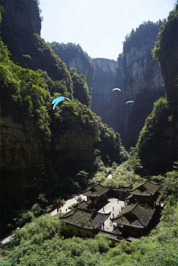 飞翔伞穿越天龙桥