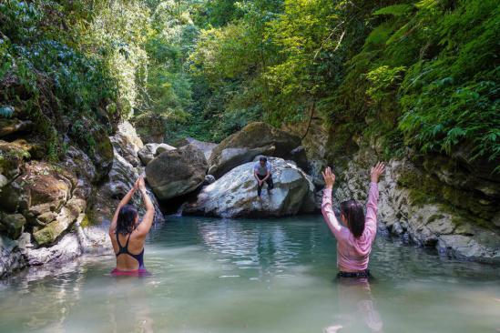 “不要选择热天(夏天),秋冬蛇上山了再去嘛!”去不到黄莺大峡谷,我们选择了黄莺乡挨着不远的一个不知名峡谷,那里紧邻公路,一条山间小溪自然流淌,安全性高,特别适合溯溪玩水。