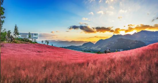 每逢国庆,武隆懒坝国际艺术区成片的粉黛乱子草就迎来最佳观赏期!一面粉黛摇曳,一面山峰巍峨,景区内成片粉紫色花穗如云似雾,宛若一片“粉色海洋”。