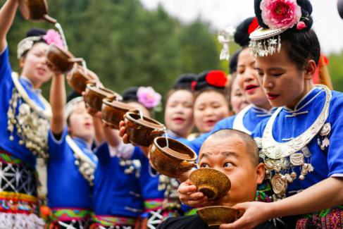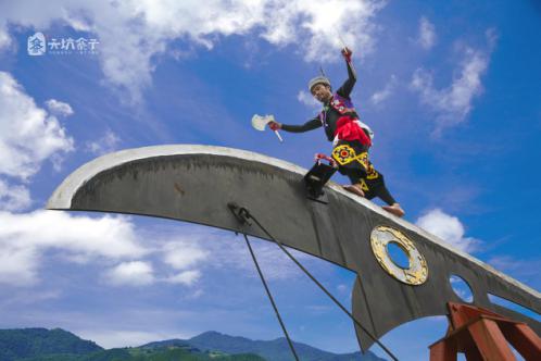 国庆期间,天坑寨子每天都将带来众多非遗文化表演,对唱山歌,跳摆手舞、竹竿舞,吃长桌宴、看传统婚嫁习俗。还有多位牛人带来惊爆眼球的绝技表演,如赤脚行走18米大刀的“刀锋舞者”、将三棒鼓抛刀耍得眼花缭乱的“小李飞刀”、赤火烧身的“火王”,让您充分体验民俗魅力。