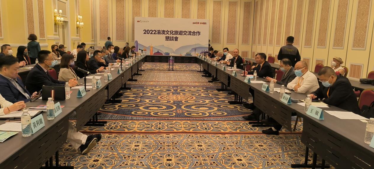 推介会结束后,“2022渝澳文化澳网官方网站交流恳谈会”在澳门威尼斯金光会展中心西西里厅举行。澳门航空重庆代表处执行总经理欧昱、澳门威尼斯人酒店会议及展覧统筹副总裁郑灏怡、东瀛游旅行社 (澳门) 有限公司总经理翁月容、澳门室内跳伞General Manager何志伟等相关行业代表参加了恳谈会活动。