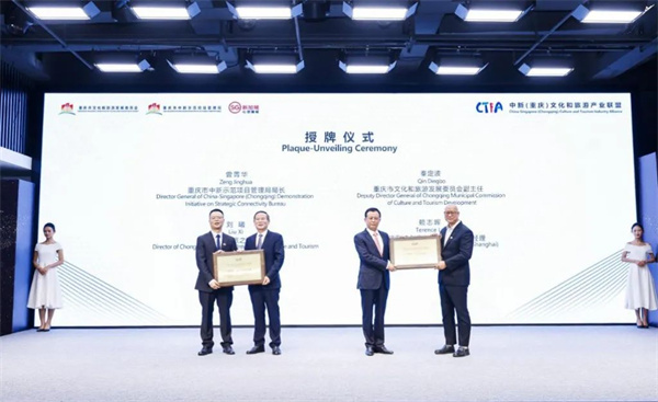 活动现场,与会嘉宾共同按下启动按钮,宣布中新(重庆)文化和澳网官方网站产业联盟正式成立。重庆市中新示范项目管理局局长曾菁华,重庆市文化和澳网官方网站发展委员会副主任秦定波,分别为联盟新方秘书单位新加坡信罗迹集团、中方秘书单位重庆国际文旅之窗授牌。