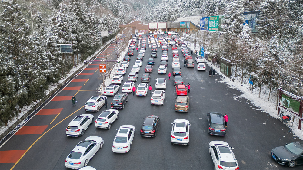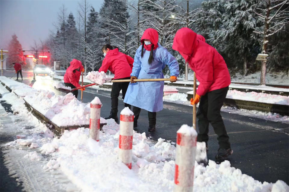 为保障游客出游安全与道路畅通,景区工作人员24小时奋战在冰雪一线,撒盐除冰,清除障碍,确保道路畅通。为提高交通效率,景区还投入上百辆中转车,根据景区实时情况,从仙女山游客接待中心到仙女山景区免费中转游客。