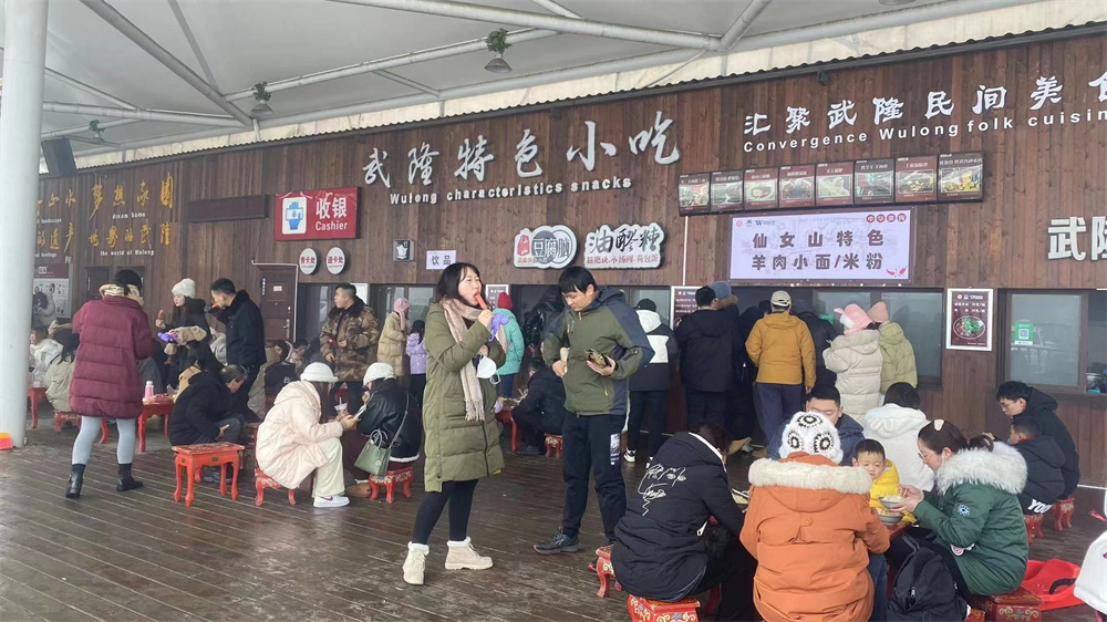 滑雪赏雪、美食美景一个都不能少,在仙女山户外滑雪场美食区同样人气爆棚,羊肉粉、重庆小面、特色烧烤等美味小吃汇聚,畅玩滑雪玩雪后吃点特色美食,暖心又暖胃。