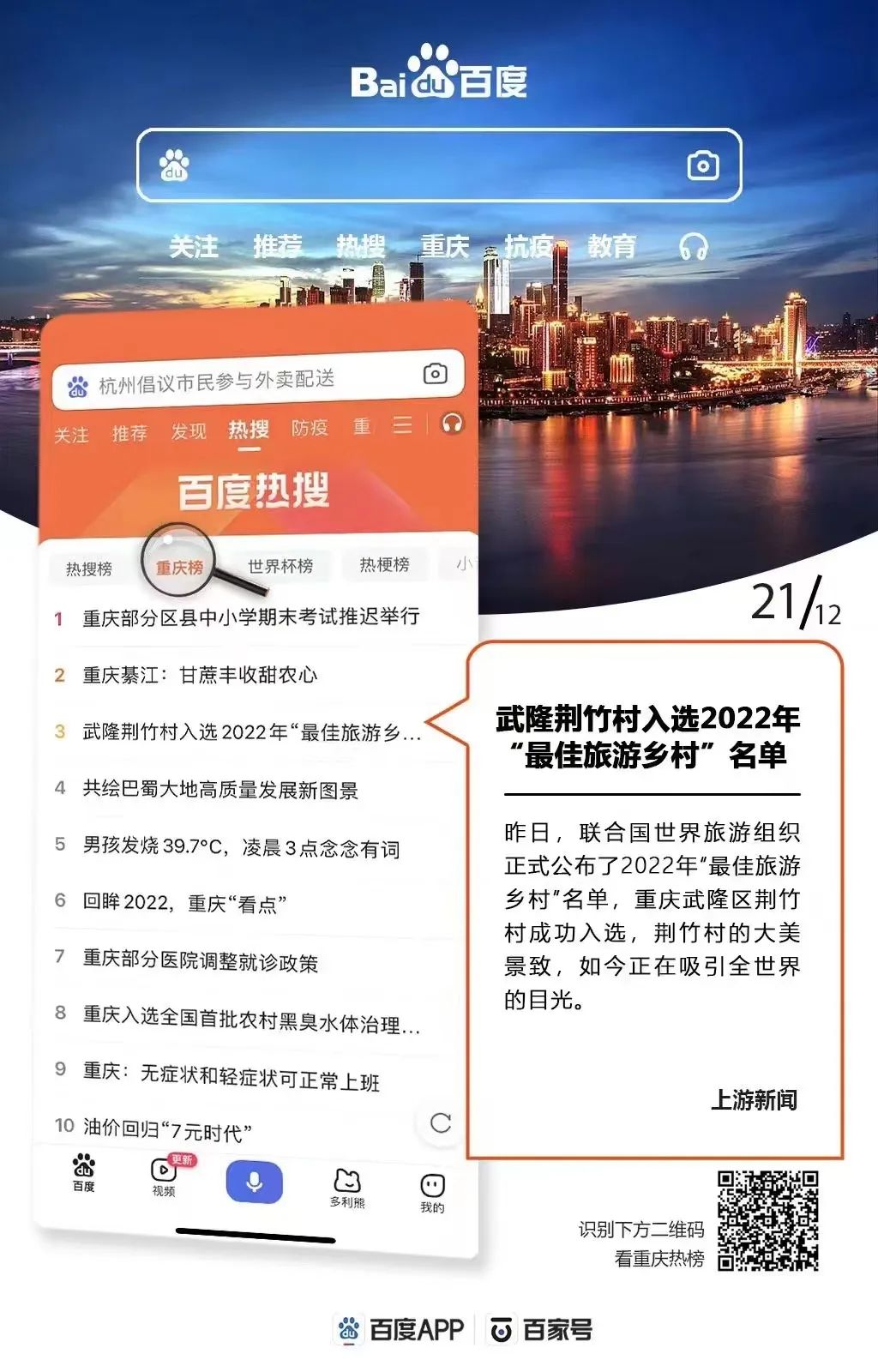 荆竹村,从“藏在深山无人知”到如今引起国际关注,荆竹村实现了经济效益和社会效益双丰收,走出了一条保护和发展双赢的新路子,不仅为武隆澳网官方网站新添一块国际性的金字招牌,更成为重庆首个获得该项殊荣的乡村。