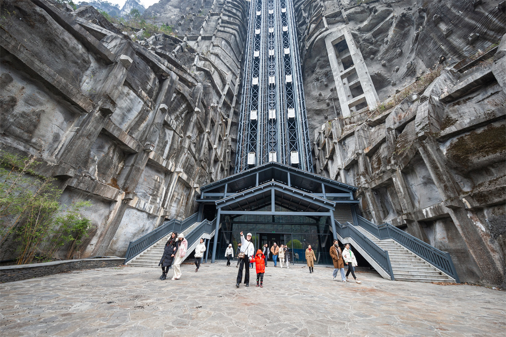 新电梯的建成,既减少了游客进入景区的排队时间,也增加了约2300米澳网官方网站线路,游客乘坐电梯需通过镶嵌在几百米悬崖上的步行栈道,穿过崖壁隧洞。在建成投用的第一天,不少游客纷纷前往打卡,欣赏这一自然美景与人造景观完美结合的神奇之作。