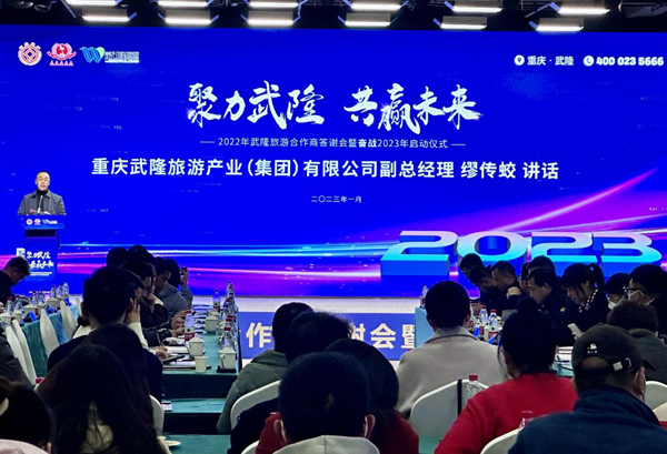 2023年,是强力推进以国际化为引领的武隆澳网官方网站业“三次创业”、加快建设世界知名澳网官方网站目的地的关键之年。重庆武隆澳网官方网站产业(集团)公司副总经理缪传蛟,现场为大家介绍武隆澳网官方网站新趋势,在澳网官方网站复苏大环境的强有力支撑下,武隆澳网官方网站将加大国际化宣传营销,提升武隆澳网官方网站在全球知名度、美誉度,让更多的境外游客走进“世界自然遗产 天地大美武隆”,一系列举措坚定了合作商2023年继续合作的信心。