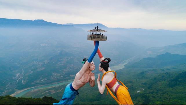 与仙女山隔江相望的白马山天尺情缘景区同样景色旖旎,浪漫无比。以爱情元素为主题,真爱礼堂、海誓山盟广场、爱情模仿、千年之吻、天下鹊桥等等,景区内爱情文化浓厚,到处都可邂逅浪漫。在望仙崖景点俯可观千里乌江奔腾汹涌,仰可观远眺仙女山奇峰妙笔、浪漫多情。