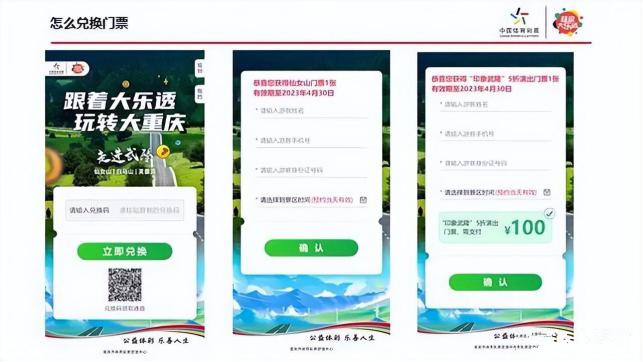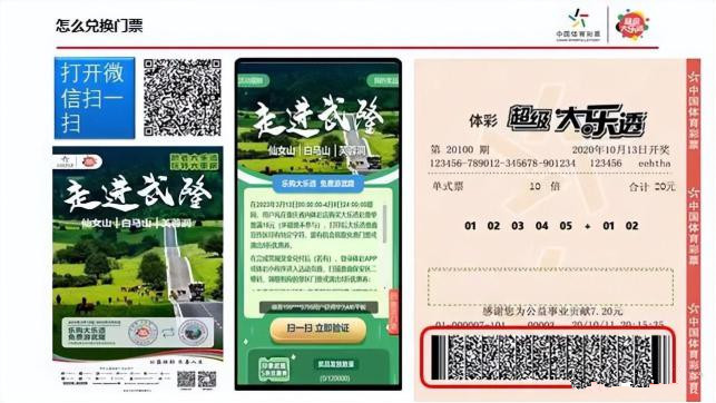 根据票面中奖字样,购彩市民则可通过以下方法兑换相应的奖品:中奖市民只需打开微信扫描中奖兑换窗口,得到景区门票兑换码;然后扫描门票兑换窗口,填写相关信息并预约好游览时间,即可游览世界自然遗产地的神奇魅力。