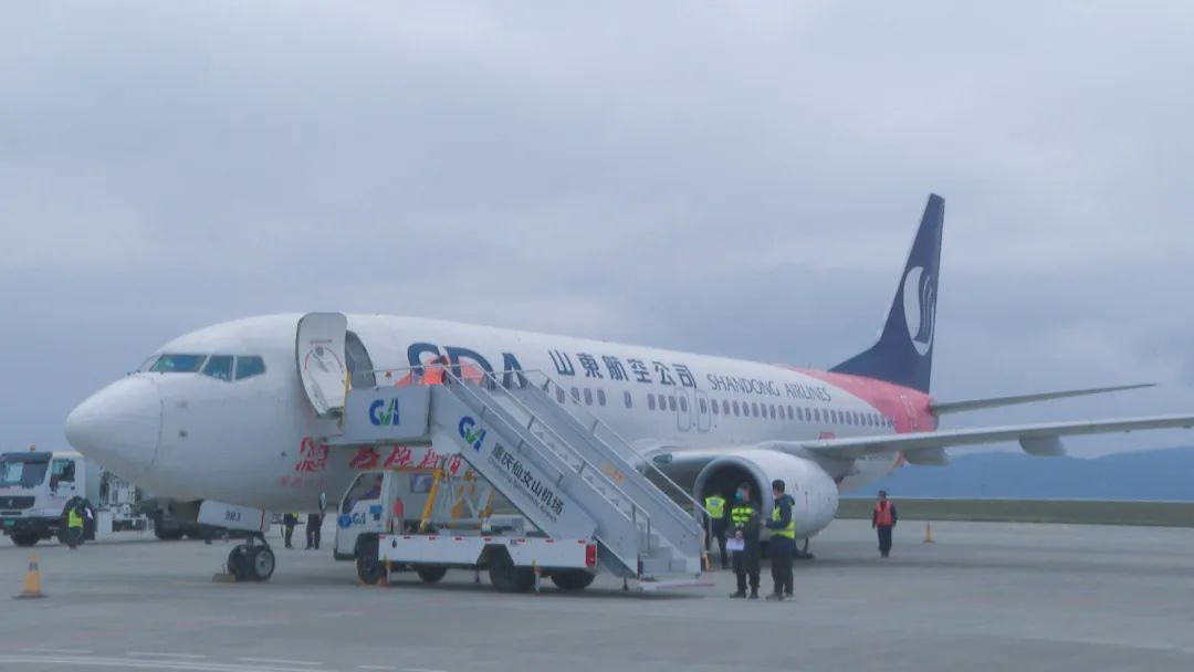 3月21日14时37分,由山东航空执飞的SC8821“济南—武隆—成都”航班顺利抵达仙女山机场,在经过60分钟的检修,加油和乘客上下机后,这趟航班又如约起飞,向着终点站成都飞去。17点50分,同样由山东航空执飞的SC8822航班由成都天府机场出发,18点42分抵达仙女山机场。乘坐空中“飞的”,更多的游客朋友直达武隆核心景区,开启了奇幻的喀斯特自然之旅。
