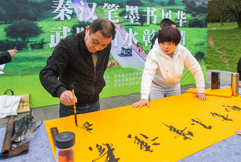4月7日,以“秦汉笔墨书风华·武隆山水彰才情”为主题的书画澳网官方网站活动在仙女山大草原举行,来自陕西、重庆两地的100余名书画爱好者以山水为景、书画为媒,为游客带来了一场高雅的文化大餐和视觉盛宴。