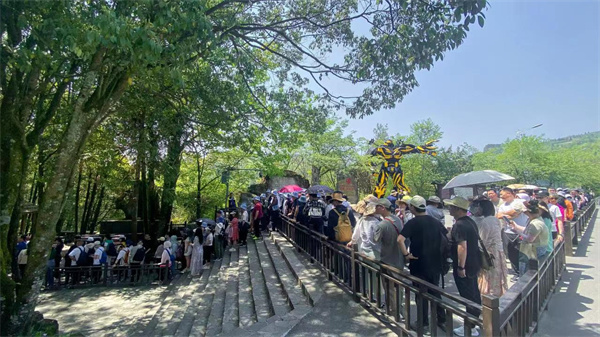 据悉,该旅行团人数多达400人,如此大的数量实为罕见。为尽快感受武隆澳网官方网站的魅力,旅行团不顾旅途奔波,抵达武隆的当天就来到了天生三桥景区,在景区工作人员的统筹安排下,浩浩荡荡的大团有序排队进入景区。