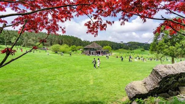 从天生三桥出来游客们意犹未尽,马不停蹄来到了仙女山。正值春盛的仙女山茫茫林海,苍翠欲滴。山林间的辽阔草场延绵天际,旖旎风光给人呼伦贝尔大草原的即视感。